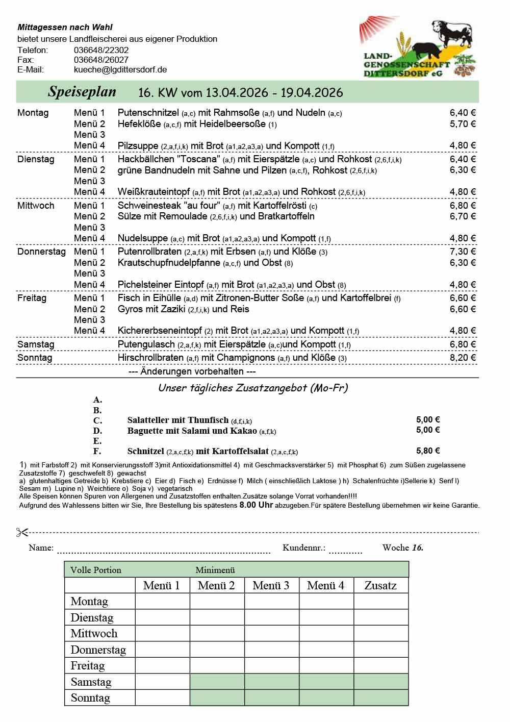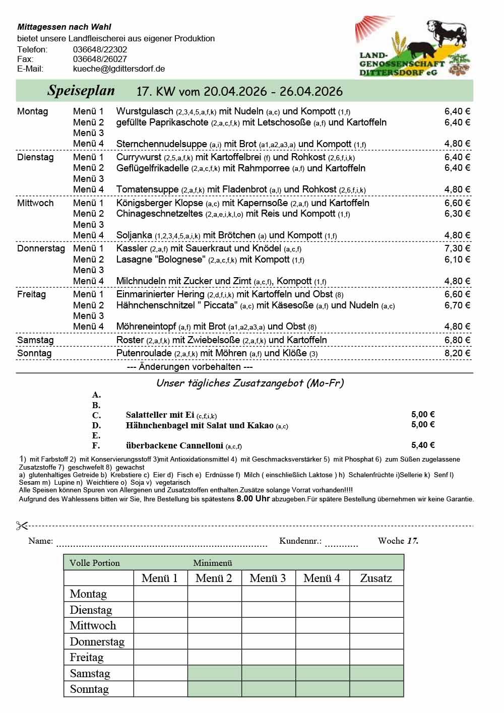 Unser „Essen auf Rädern“ Service bietet eine praktische und schmackhafte Lösung für alle, die nicht selbst kochen können oder wollen. Mit unserer vielfältigen Auswahl an frisch zubereiteten Mahlzeiten bringen wir Ihnen täglich gesunde und ausgewogene Gerichte direkt nach Hause. Unsere Speisen werden mit hochwertigen Zutaten und viel Liebe zum Detail zubereitet, um Ihnen ein genussvolles Essen zu garantieren. Egal, ob Sie besondere Ernährungsbedürfnisse haben oder einfach nur nach Bequemlichkeit suchen, unser Essen auf Rädern Service bietet eine bequeme und zuverlässige Lösung für eine ausgewogene Ernährung im Alltag.