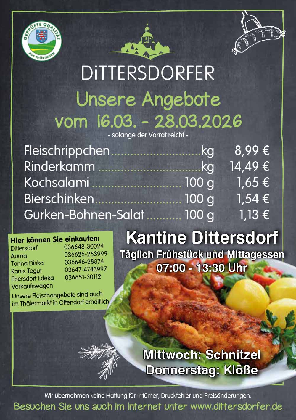 In unserer Filiale am Hauptstandort in Dittersdorf erhalten Sie neben Fleisch- und Wurstwaren auch unsere Molkereiprodukte sowie eine Auswahl an Backwaren. Verbinden Sie Ihren Einkauf mit einem Aufenthalt in unserer Kantine oder einem Bummel durch den Landmarkt.