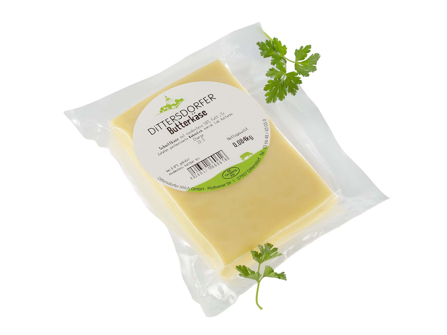 Unser Butterkäse ist ein halbfester Schnittkäse, der sich durch seinen milden Geschmack und seine hellgelbe Farbe auszeichnet.